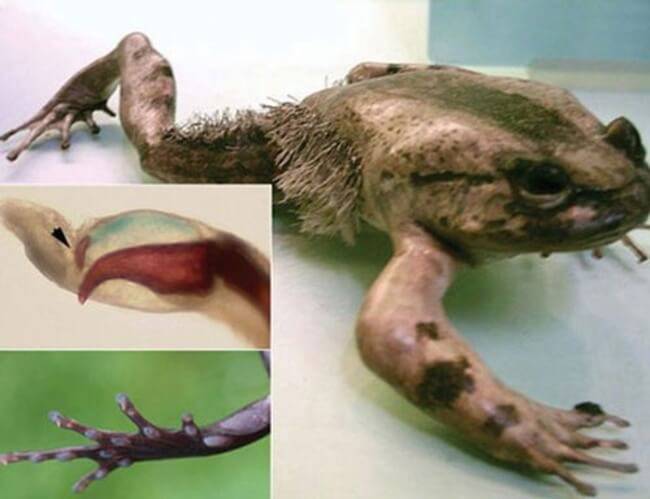 El último animal de esta lista realmente te impresionará (y te asustará). los ranas africanas peludas, comúnmente encontrado en Camerún, tener la habilidad de romper los huesos de los pies y convertirlos en garras cuando se sienten amenazados. Cuando un depredador los ataca, las garras perforan las ventosas de esta rana peluda, lista para defenderse. Estas garras no están en Adamantium (aleación de metal ficticia), pero se cree que pueden haber inspirado a la compañía Marvel a crear el personaje de Wolverine.
