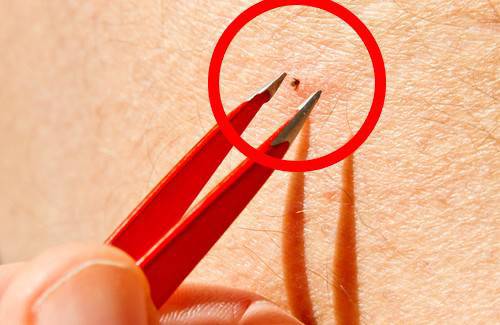 En la farmacia se venden herramientas especiales, como por ejemplo pinzas con la forma de la palanca que va a atascarse entre la tribuna y la piel y facilitar la extracción de la garrapata. A continuación se muestra la foto.