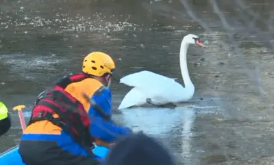 Atrapado en hielo, cisne rescatado después de 10 horas