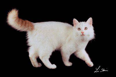 CABEZA: Corta y en forma de cuña, con nariz larga. La piel de la nariz debe ser rosada. OJOS: Grandes y redondos, de color ámbar claro, con perfil rosado. OREJAS: Grandes, puntiagudas, con mechones de pelo. El interior de las orejas debe ser de color rosa concha. CUERPO: De tamaño mediano, largo y musculoso. PELAJE: Sedoso y largo, de color blanco tiza con dibujos de color rubio cobrizo en el hocico y la cola. Falta la capa interna suave. COLA: Larga y esponjosa. PIES: Pequeños, bien formados y redondos, con almohadillas rosas. Mechones de pelo entre los dedos. PATAS: De longitud media y musculosas. Además de las variedades White y Copper originales, White-cream, White-Black, Tortoise-white, Brown-ivory, Tabby-white, también se han desarrollado las variedades Nero tortie y Agouti-white.