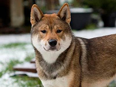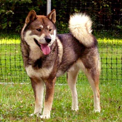Es un perro de tamaño mediano, bien proporcionado, con extremidades marcadas y bien desarrolladas. Los ojos son relativamente pequeños, triangulares, bien separados, de color marrón oscuro. Las orejas son pequeñas, triangulares, se mantienen rectas y ligeramente inclinadas hacia adelante. La cola es alta, gruesa, llevada en la espalda con la formación de un rizo bien rizado o en forma de hoz. Cuando se baja, llega al corvejón. Cabello: El pelaje es doble, con una capa superior áspera y recta y una capa interna suave y densa. El pelo de la cola es bastante largo. Color: sésamo (mezcla igual de pelo blanco y negro), sésamo negro (predominio del negro sobre blanco), sésamo rojo (fondo del pelaje rojo, mezclado con pelo negro). Tamaño: machos 52 cm; hembras 46 cm.