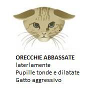 Un gato que está asustado o agitado puede mover sus orejas hacia su cuello y sujetarlas firmemente contra su cabeza o moverlas hacia los lados para que parezcan alas de avión.