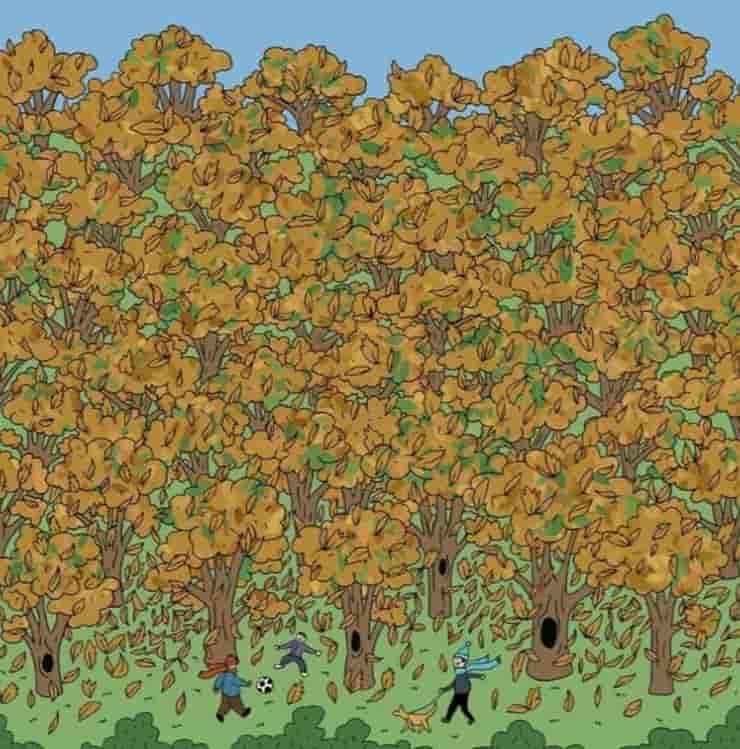 Los múltiples árboles representados con los cientos de hojas marrones que están a punto de desprenderse de los árboles para caer al suelo verde, de hecho, llevan al usuario a estar muy confundido, ya que la ardilla que se identificará en este desafío visual es exactamente del mismo color de las hojas.