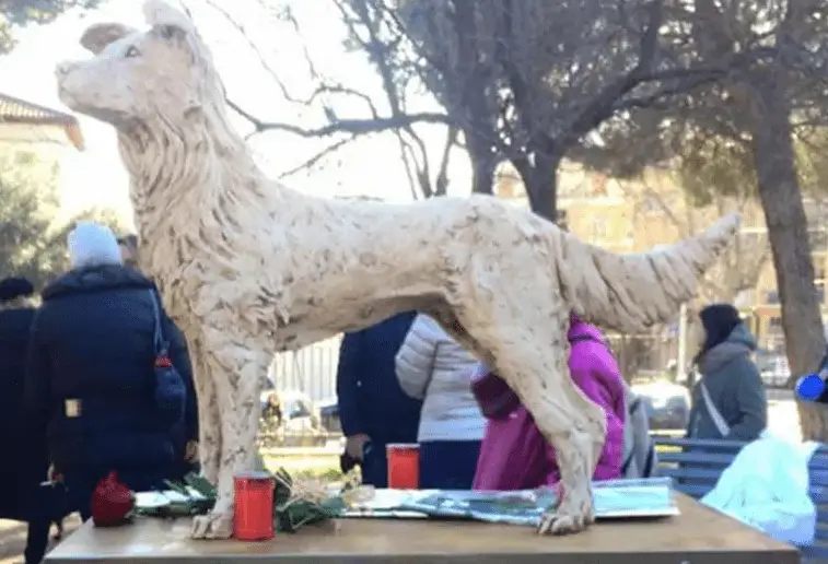La estatua, creada por el artista Alessandro Di Cola, ve al perro en toda su belleza y orgullo, con una gran placa que lleva su nombre.