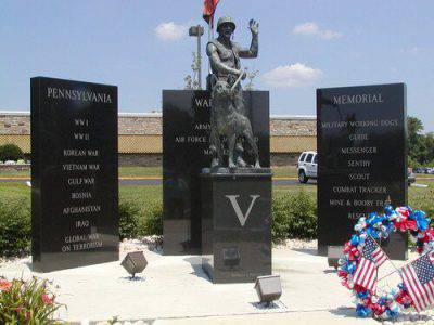 Monumento a los perros militares de las fuerzas estadounidenses que han honrado la bandera estadounidense durante más de 90 años, en Bristol, Pensilvania.