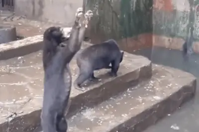 Escenas desgarradoras de condiciones inhumanas y bárbaras en las que pobres osos son encarcelados en una zona sucia, sin espacios verdes, solo con cemento. Para ayudar a los pobres animales, los propios visitantes compran comida en el lugar, principalmente bocadillos o cacahuetes que también pueden ser tóxicos para los osos que comen miel en la naturaleza, mientras que en el zoológico incluso comen sus propias heces.
