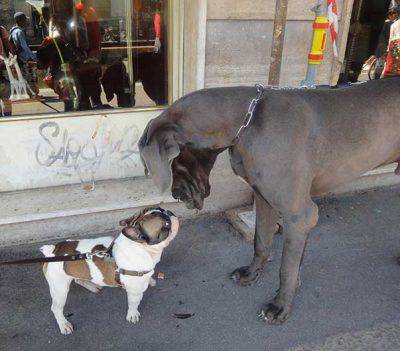 De hecho, los perros no se dan cuenta de su tamaño, por lo que si nos topamos con un Pinscher dominante y un Mastín Napolitano por otro lado, seguramente tendremos que asegurarnos de que el dueño sea consciente de los riesgos.