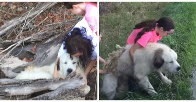 Al no conseguir que el gran perro se mueva, toda la familia decide dejarlo allí y volver más tarde con refuerzos. Tomó 10 horas para organizar el equipo de rescate.